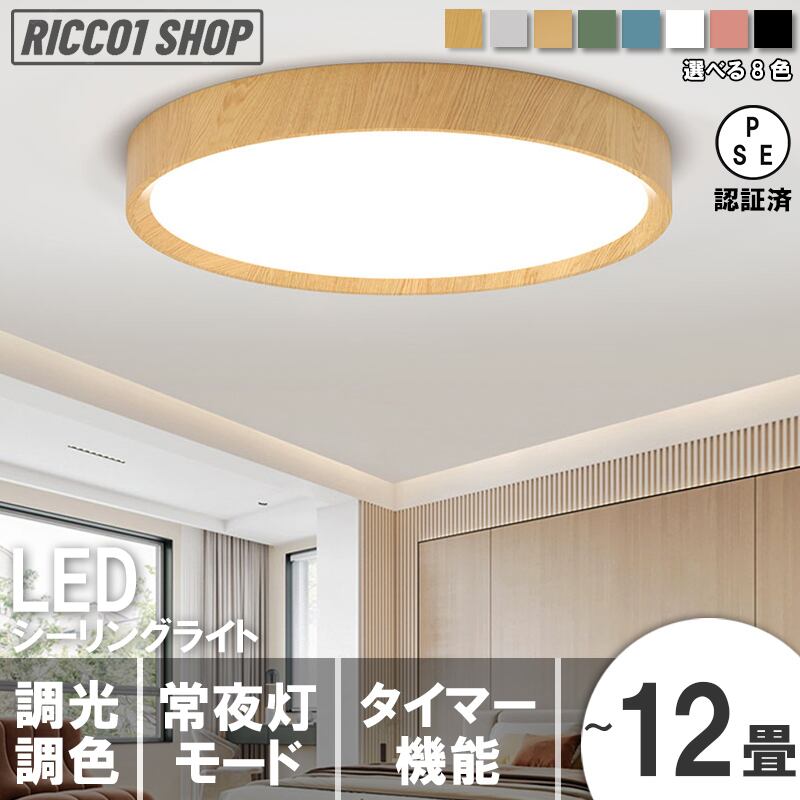 シーリングライト LED 6畳〜12畳 おしゃれ 間接照明 天井照明 木目調 北欧 調光調色 丸型 薄型 軽い 省エネ 節電 リモコン付き 常夜灯 タイマー 和室 寝室 洋室