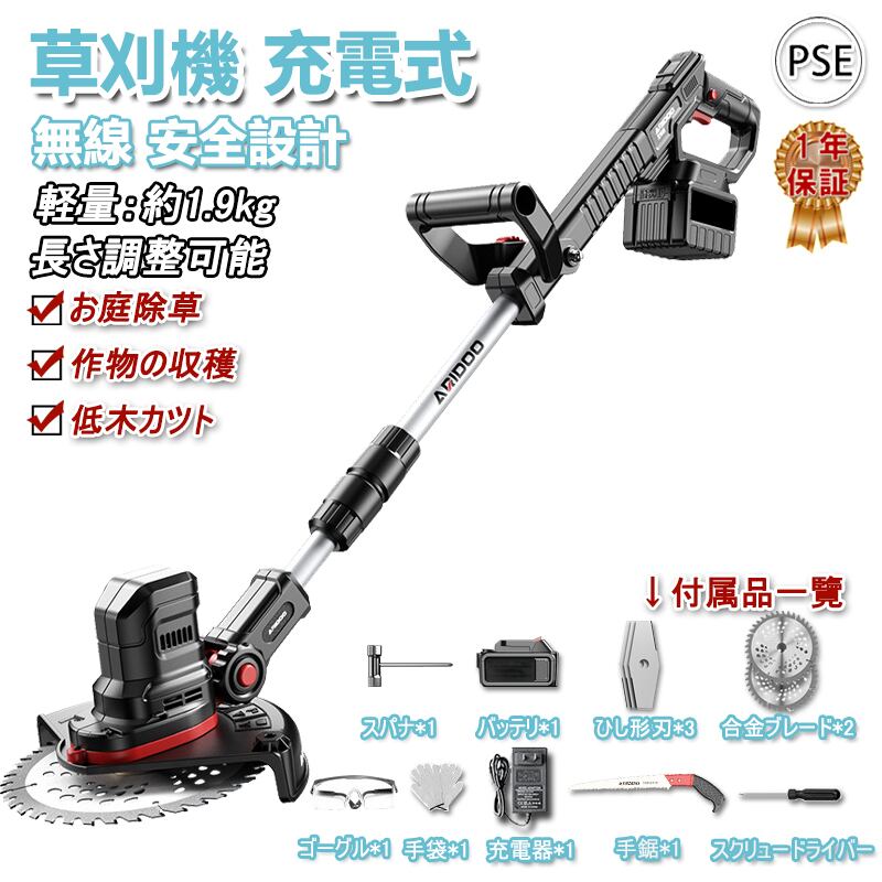 草刈機 充電式 バッテリー付 電動草刈り機 6インチ 伸縮式 コードレス 21Vバッテリー 角度調整 替え刃付き 枝切り 軽量 敷地 雑草 女性 初心者も対応 PSE認証