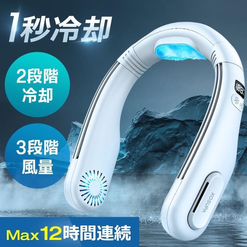 首掛け扇風機 冷却 2024新版 羽なし 静音 軽量 瞬間冷却 LED表示 空調扇風機 5200mah 風量3段調節 おしゃれ 子供 冷感グッズ 羽根なし 残量表示 携帯扇風機