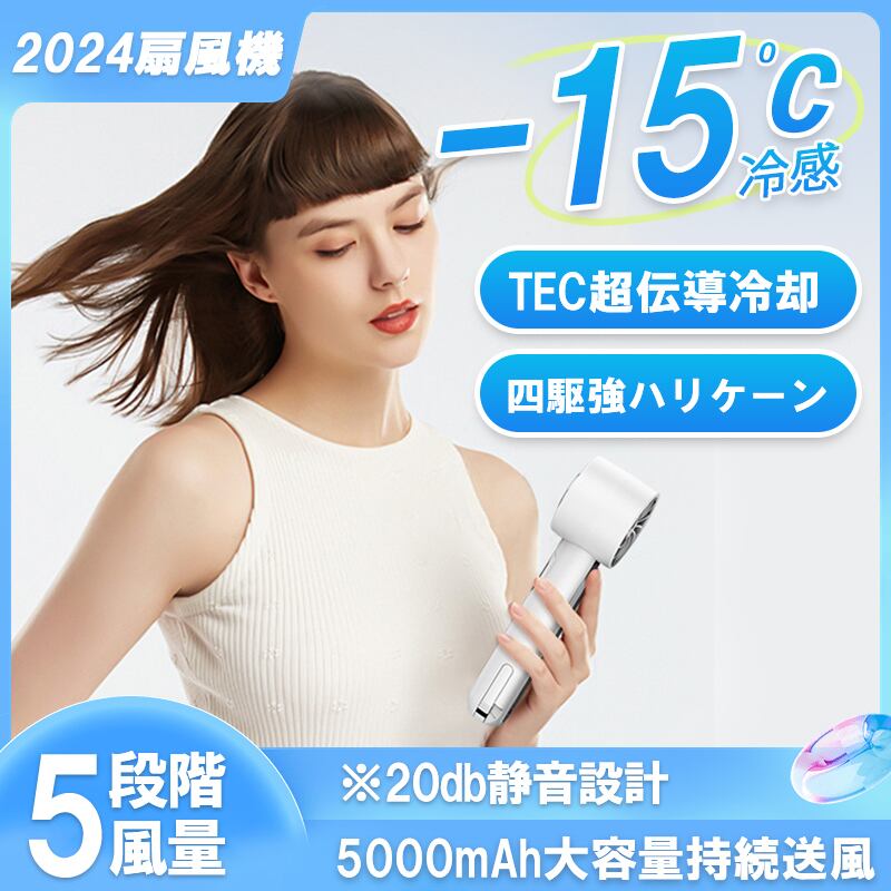 2024最新 ハンディファン携帯扇風機首掛け -15℃瞬間冷却 ハンディクーラー TEC超伝導冷却 5段風量 充電式 20db静音設计 四駆強ハリゲ-ン